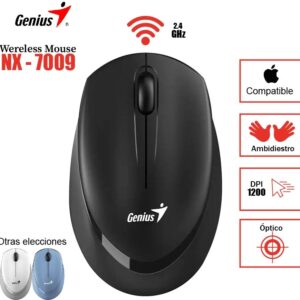 Mouse El precio original era: S/ 95.00.S/ 44.90El precio actual es: S/ 44.90. Añadir al carritoMouse inalámbrico Genius NX-7009 con sensor BlueEye, DPI 1200, diseño ergonómico y conexión 2.4GHz. Funciona en múltiples superficies .