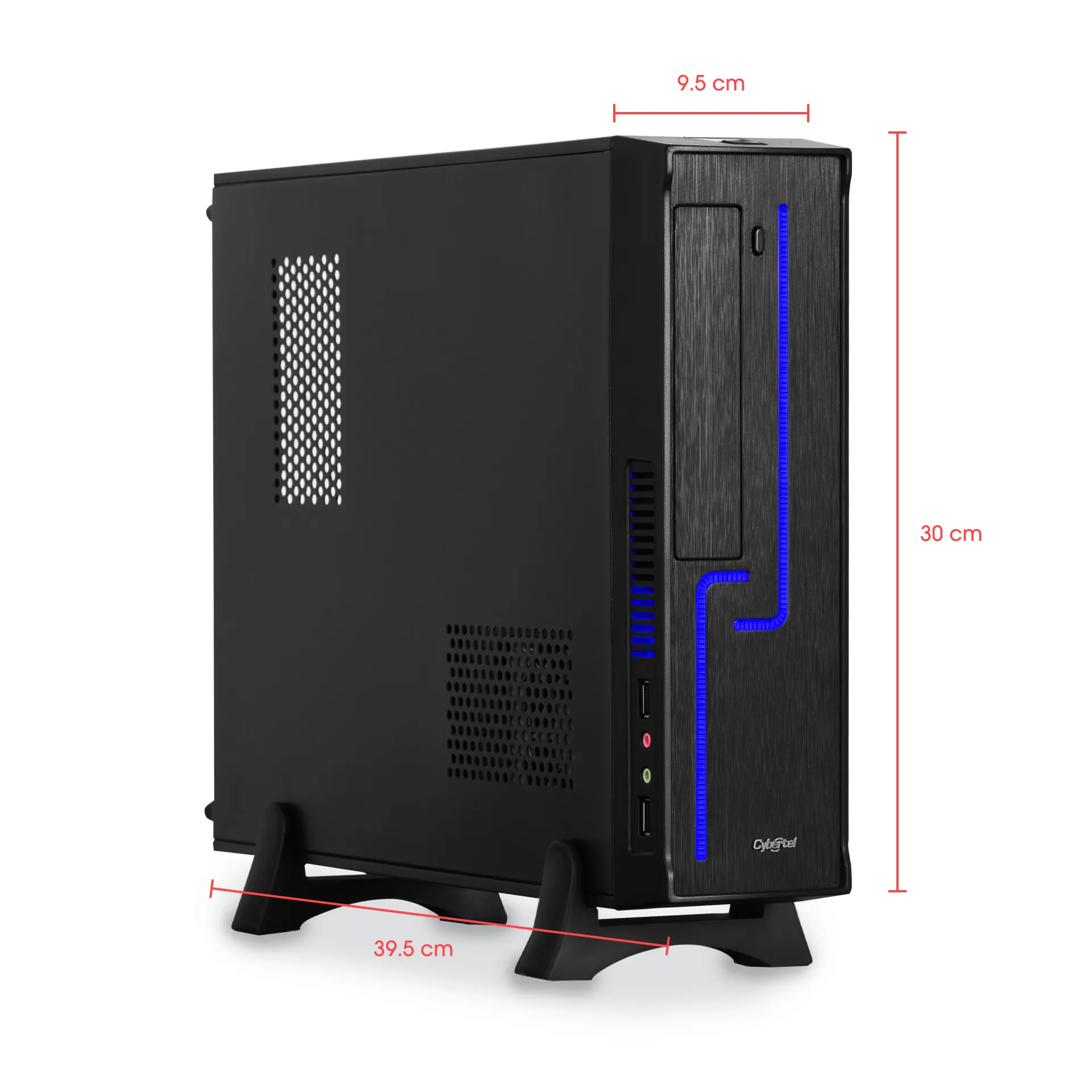 El Case DERBY Slim CYB C1005 es un gabinete ultradelgado diseñado para espacios reducidos, ideal para oficinas o sistemas multimedia compactos. Incluye fuente de poder de 230W y un cooler superior de 8 cm, ofreciendo refrigeración básica y soporte para placas Micro ATX y Mini ITX. Su diseño negro con base plástica permite instalación vertical, ahorrando espacio sin perder funcionalidad.