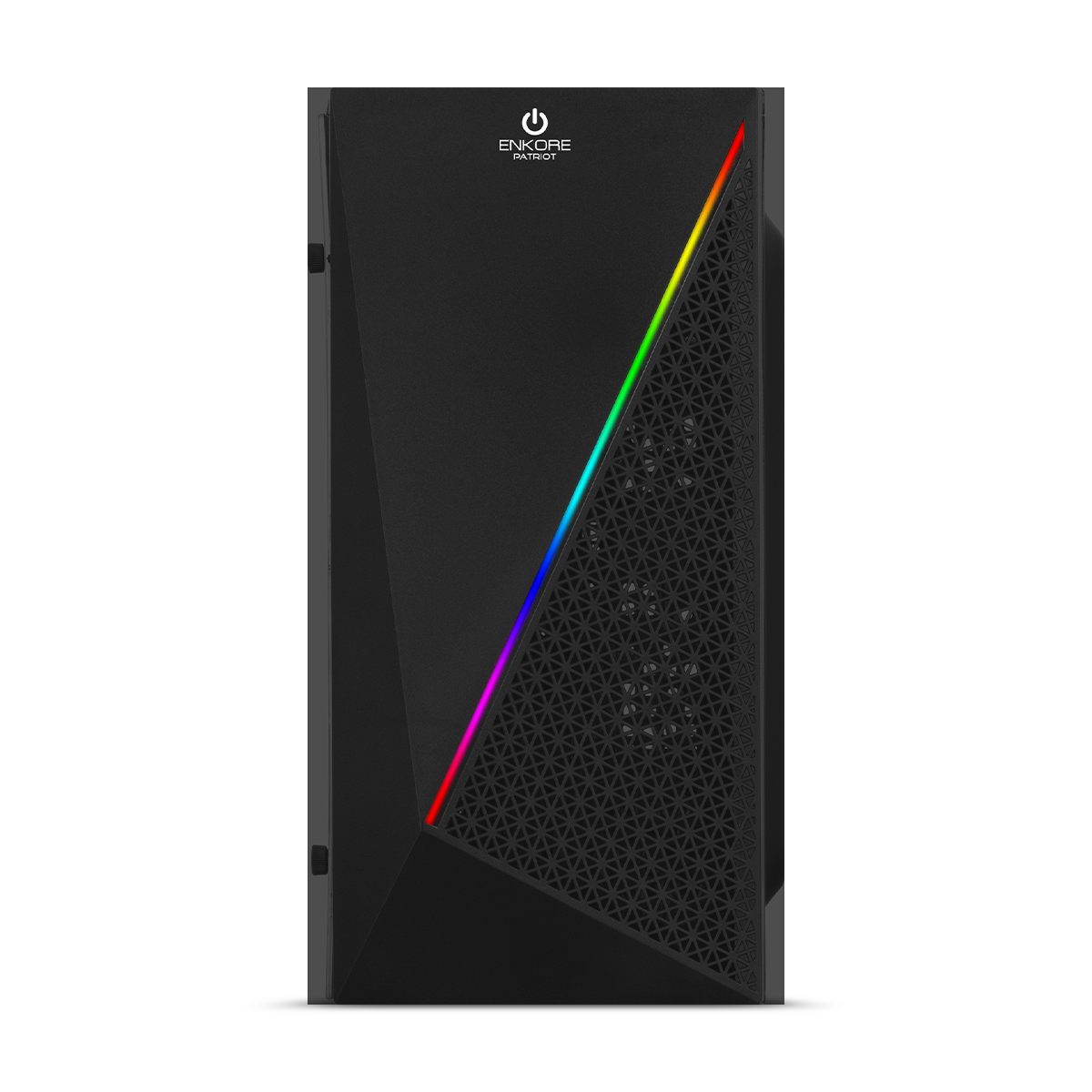 El PATRIOT ENC 3005 de Enkore es un gabinete compacto pensado para equipos de entrada con placas Micro ATX. Su diseño incorpora una franja de iluminación RGB en el panel frontal y un lateral acrílico para exhibir el interior, ofreciendo un toque gamer accesible. La gran ventaja es que incluye una fuente de poder de 230W preinstalada, junto a un ventilador trasero de 8 cm, lo que lo convierte en una opción económica y práctica para configuraciones básicas.