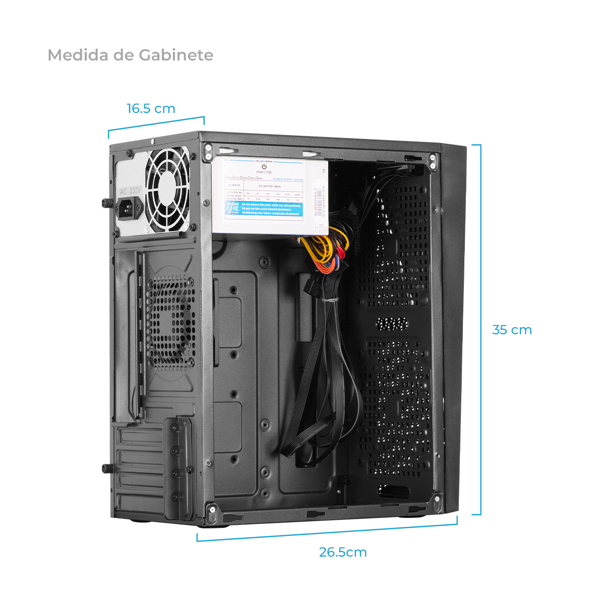 Dimensiones del chasis: 26.5 × 16.5 × 35 cm